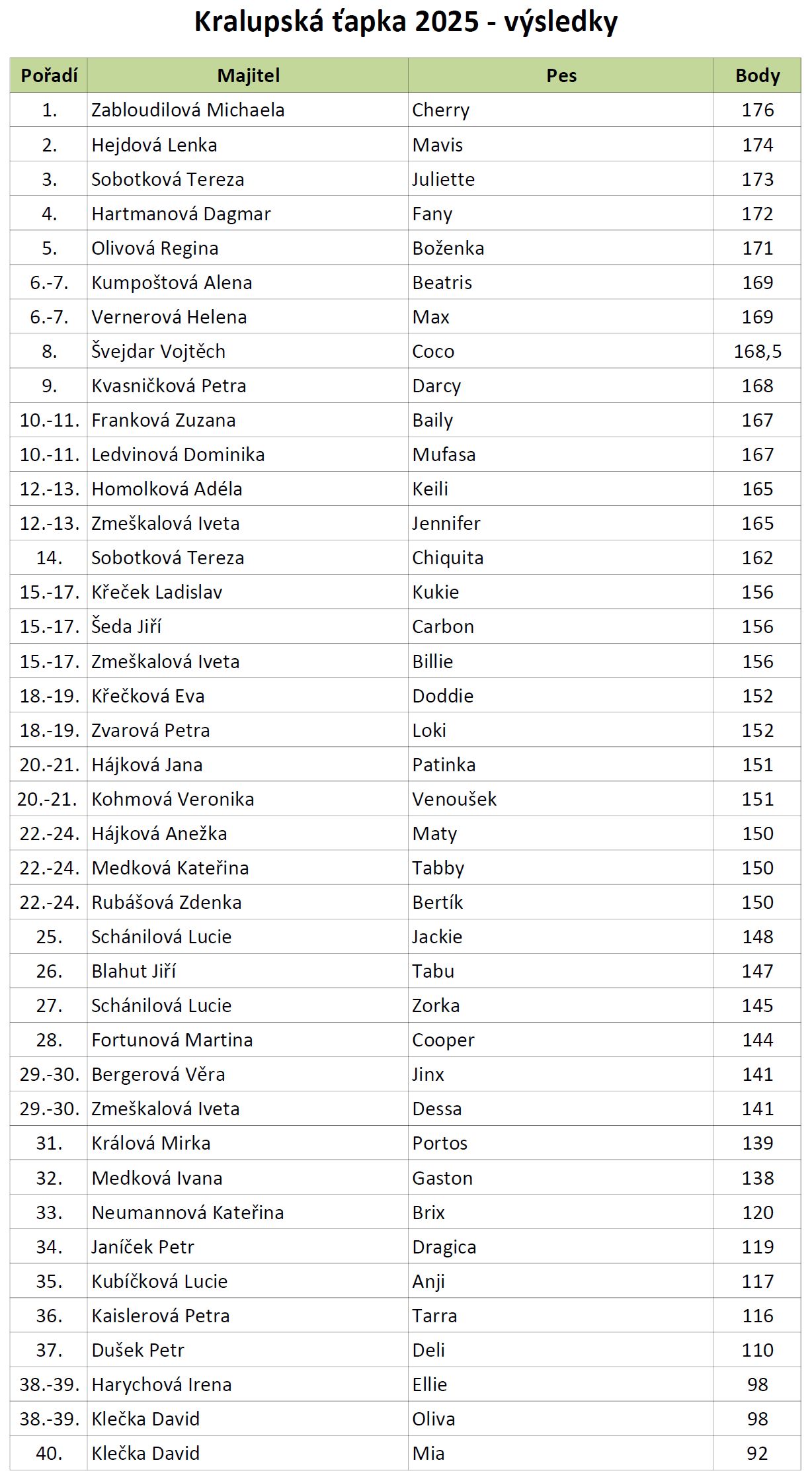 A samozřejmě díky patří i městu Kralupy nad Vltavou, pod které naše cvičiště patří, za to, že tuhle oblíbenou psí akci fantasticky podporuje.